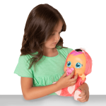 ¡Conoce al Bebé Llorón Fancy, es un flamenco muy dulce! Es monísima pero… ¡Llora lágrimas de verdad cuando le quitas el chupete! ¡Pónselo otra vez o no dejará de llorar y cada vez lo hará más fuerte! ¡ Y también la puedes tumbar para calmarla!