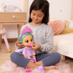 ¡Elodie lleva un vestido como una auténtica princesa! Tiene pelo de verdad con un peinado con dos trenzas, ojos de cristal, su cara es más suave y pesa menos. Elodie llora lágrimas de verdad y reproduce sonidos de bebé sin su chupete. Pónselo otra vez o no dejará de llorar. Además, puedes calmarla acunándola. Elodie también se sonroja cuando los pequeños le dan un besito en su mejilla.